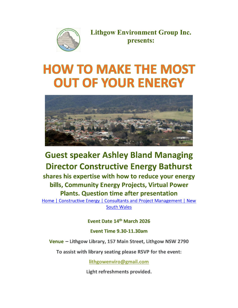 RSVP to lithgowenviro@gmail.com