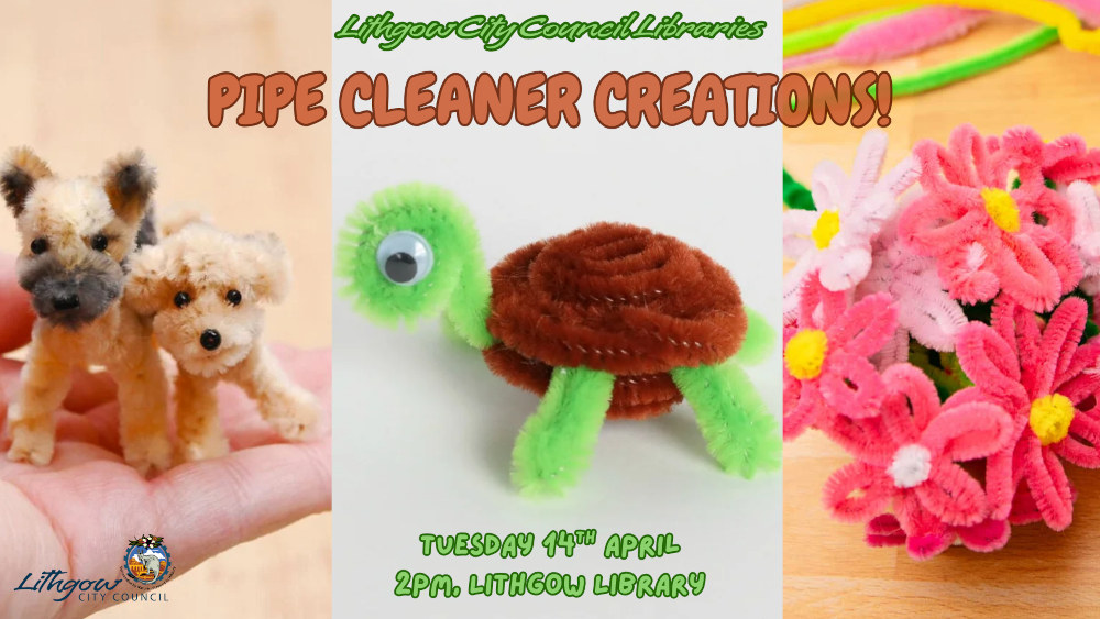 Come to the Library and get creative with Pipe Cleaners. Make animals, flowers or anything you want! All equipment is provided!